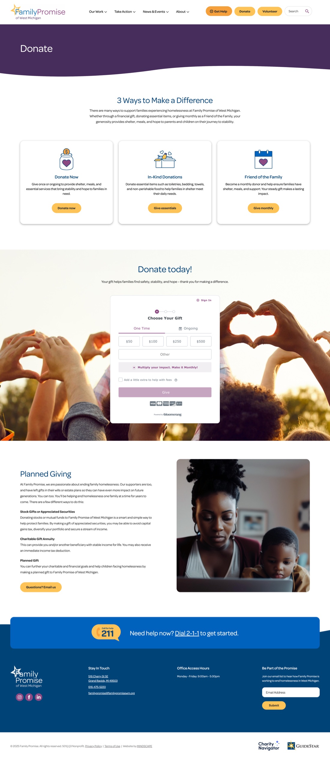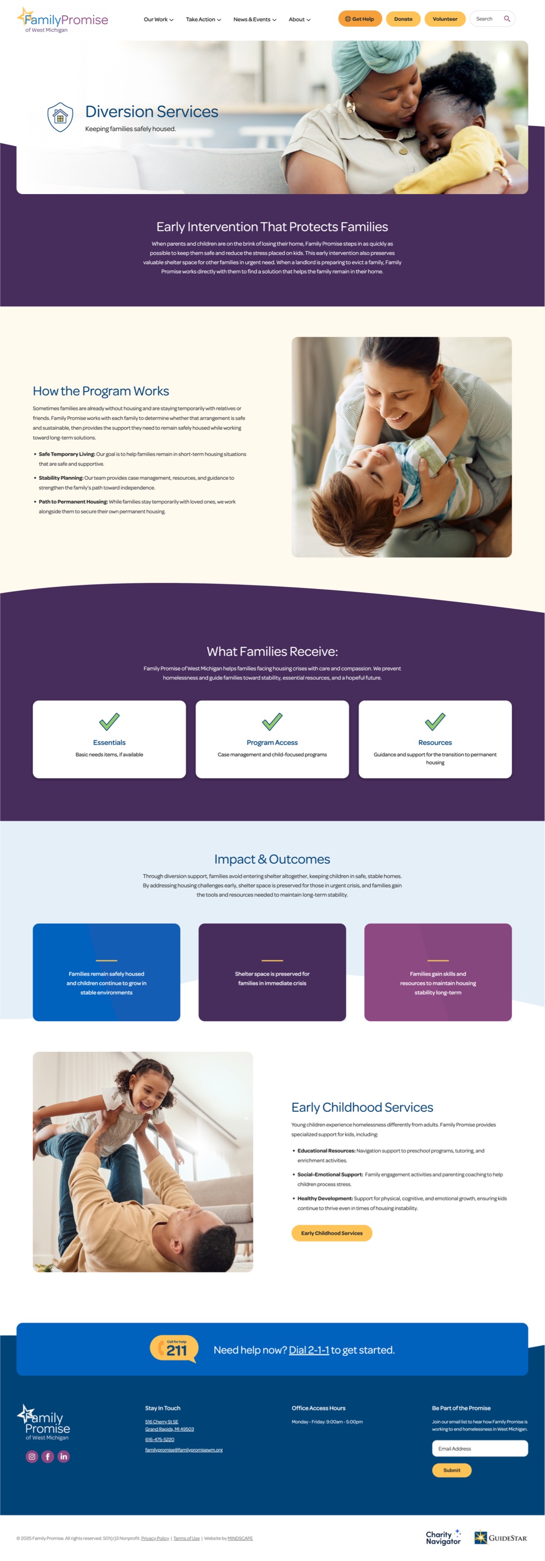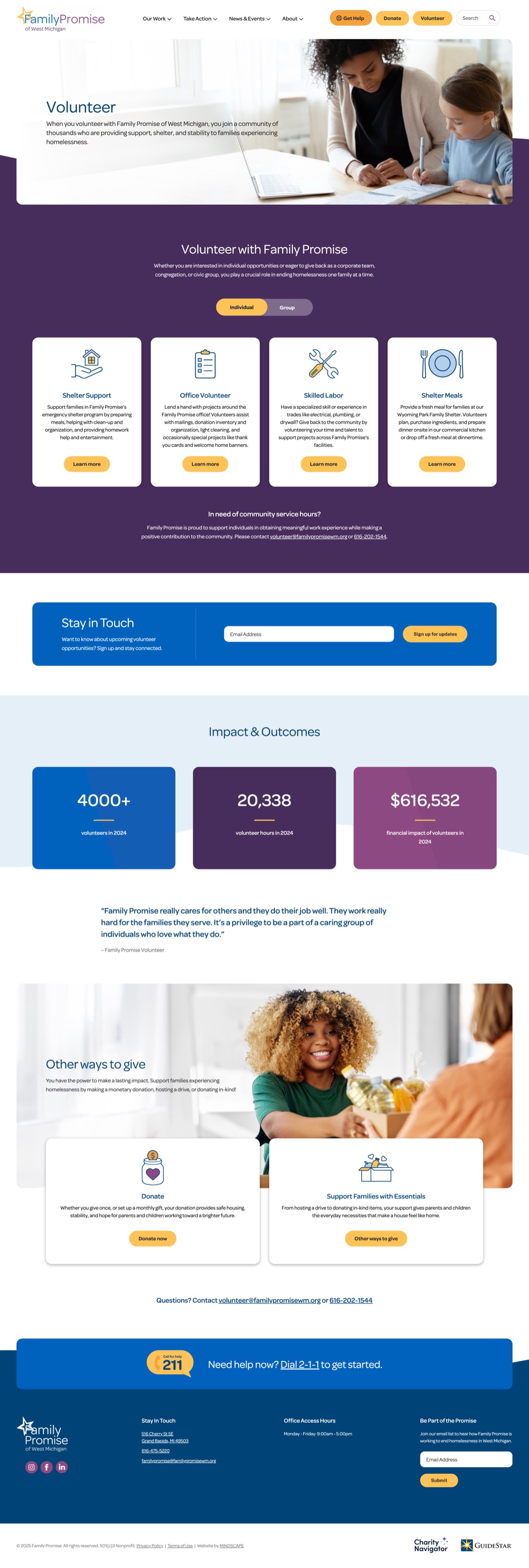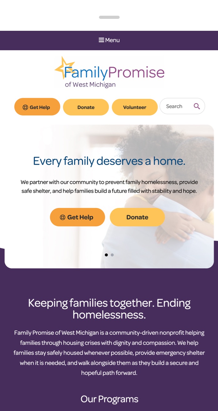 We designed and developed a new website for Family Promise to ensure anyone in crisis, including families facing homelessness in West Michigan, can quickly find the support they need. The site prioritizes fast access to critical resources while also making it easy for visitors to donate, volunteer, or get involved. With clear navigation, compelling visuals, and streamlined calls to action, the platform strengthens the organization’s mission and connects the community in meaningful ways.